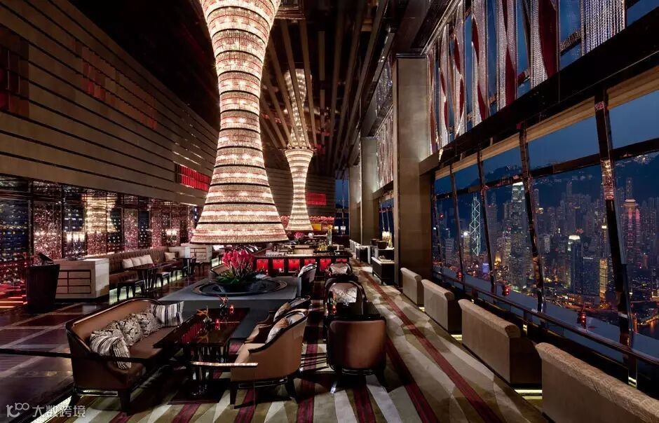 香港最高的酒店Ritz Carlton Hotel中的豪华餐厅(102层)