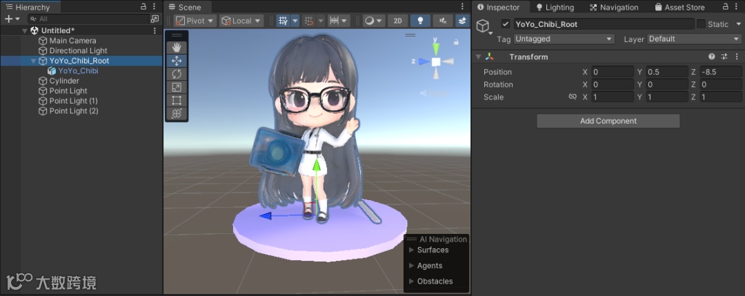 具体做法:给模型创建一个父对象,然后将模型的局部坐标归零。之后,无论是移动、旋转、缩放还是编写脚本,你都只操作父对象。模型本身的 -90 度就让它留在那里,我们不用去管它。
