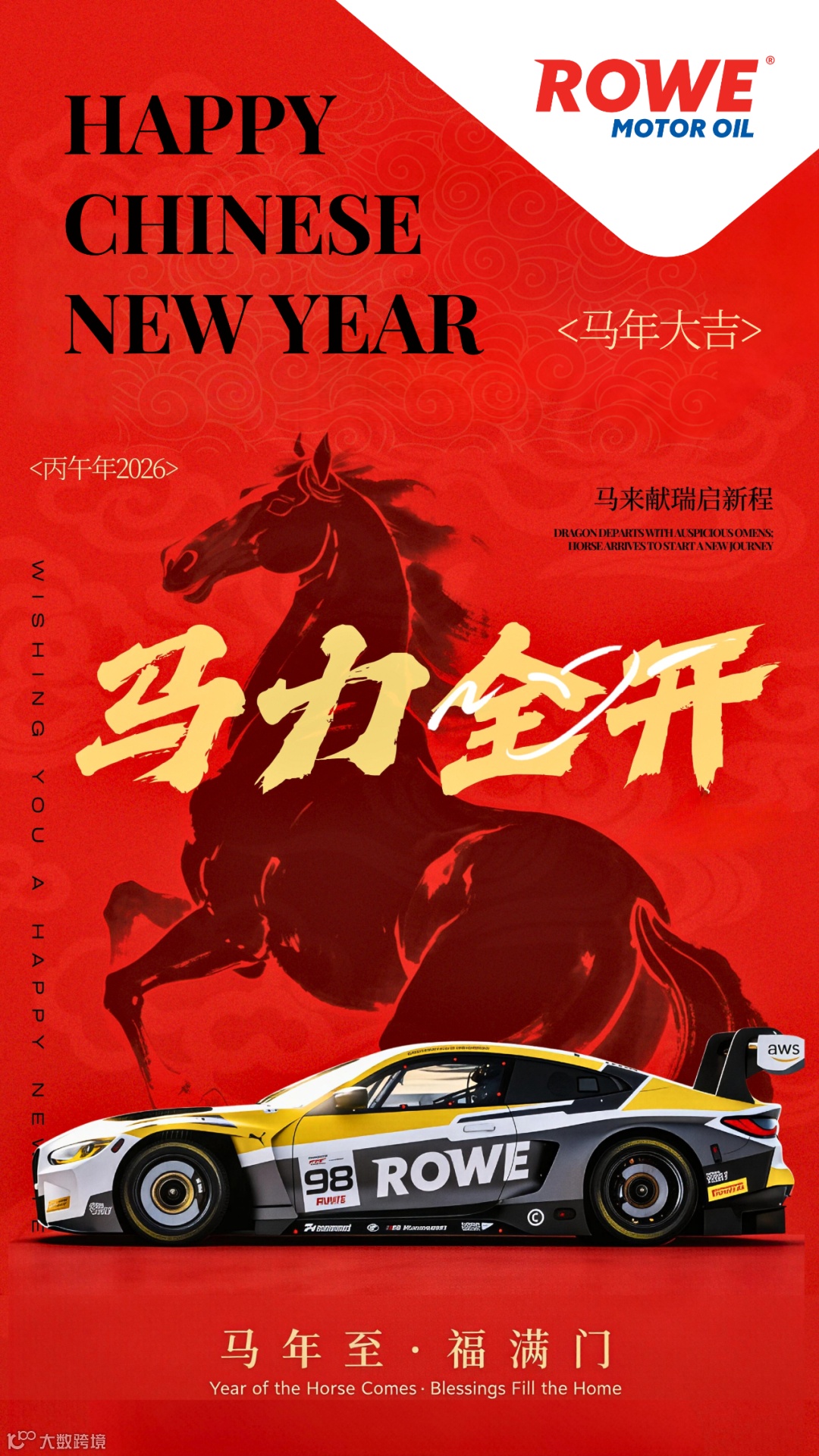 新春将至,年味渐浓。值此马年到来之际,ROWE德威润滑油诚挚向每一位合作伙伴、车主朋友及长期关注我们的伙伴,送上最真挚的祝福:愿您在新的一年里,前程似锦,万事如意,生活如骏马奔腾,事业一马当先!