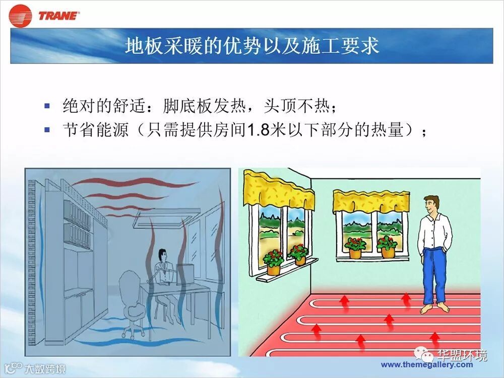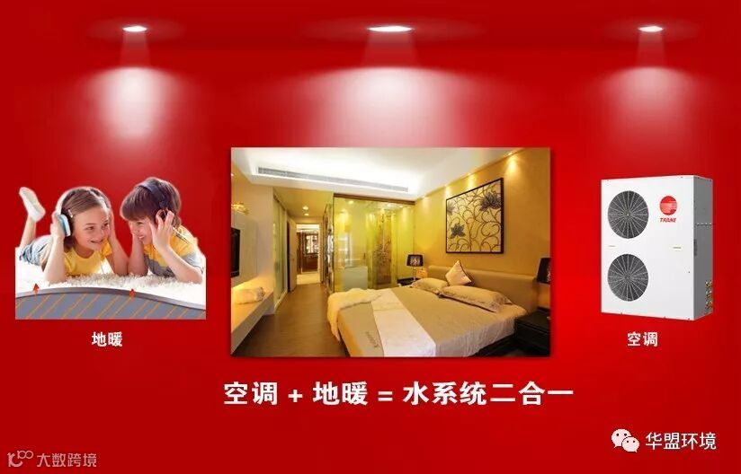 特灵水系统中央空调一个很大的特点就是,一台主机,连接两套系统,分别是空调和地暖,也就是常说的一源两末端,这大大节省了设备的放置空间。