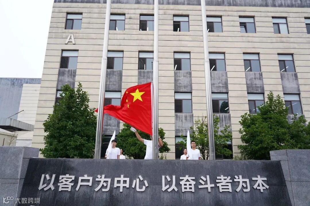 伴随着雄壮的《义勇军进行曲》奏响,鲜艳的五星红旗在公司总部大楼前冉冉升起,迎风飘扬,全场面向国旗行注目礼,表达了对伟大祖国的无限热爱。