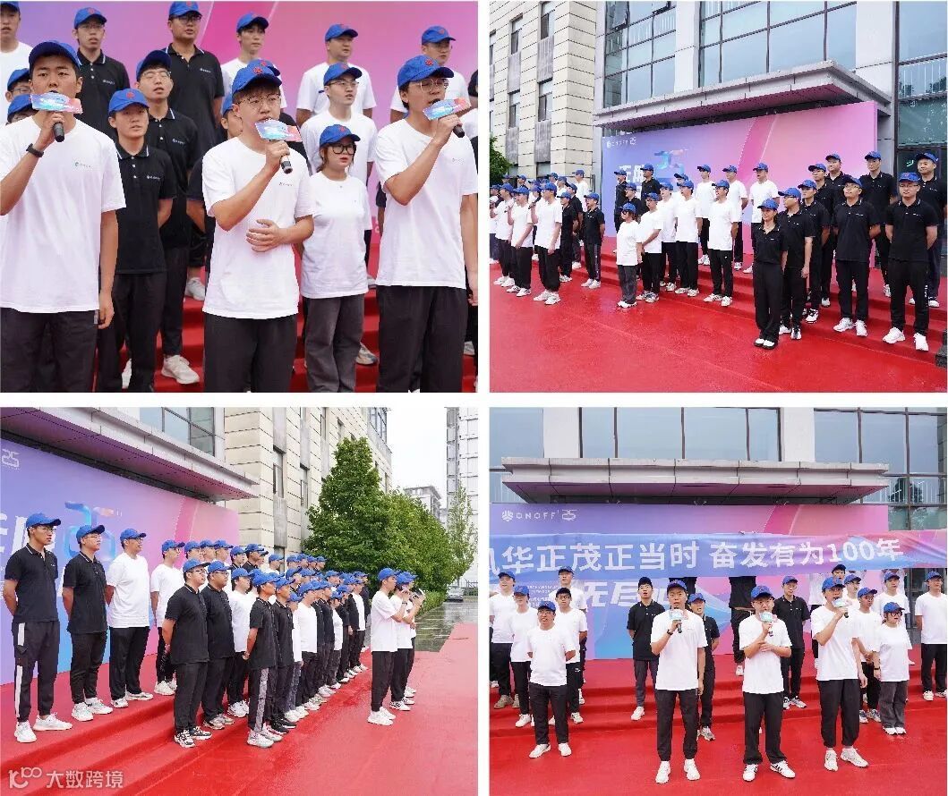 共筑梦想,迎风飞翔。由海欧21届、22届、23届全体成员为大家献上了班歌《迎着风》。他们青春活力的声音穿透人群,响彻现场,掀起了阵阵掌声。他们代表着创造力,代表着新的希望,现场也通过变换队形,呈现出ONOFF的LOGO图形,高举“风华正茂正当时,奋发有为100年”的横幅为公司送上了生日的祝福。