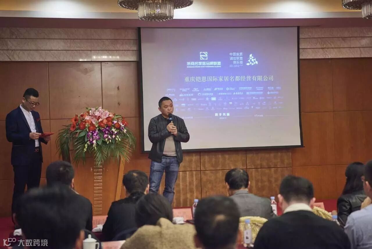 此次交流会也由欧宜风家具全权主持,会议期间,浙江省家具行业协会秘书长、浙商名家居品牌联盟主席马志翔、中国家居诚信联盟秘书长戎长生、玉环家具协会秘书长林国明以及玉环家居企业代表欧宜风家具总经理黄福青上台发表致辞!共同表示,随着家具行业的不断发展,商场与家具企业间的粘性关系应该越来越紧密,两者间的合作也将是近些年家具行业的发展趋势,双方应该携手共同前行。