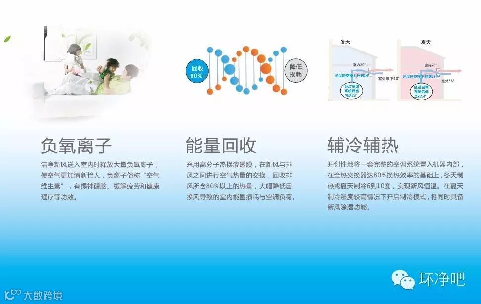 引入室外富氧新鲜空气,补充室内氧气的同时,排出室内污浊空气,使室内形成换气循环,让室内空气处在健康舒适的状态。