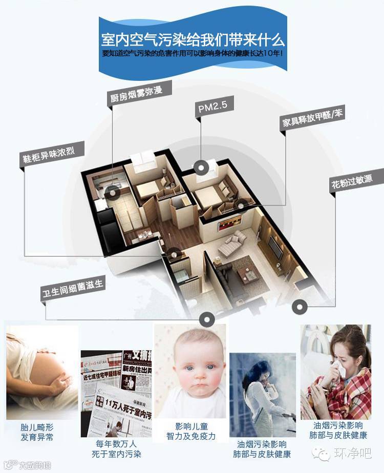 由于建筑物自身通风能力的减弱,家具、地毯上的灰尘,皮屑、二氧化碳、甲醛,抽烟的烟雾等的异味,梅雨季节的霉菌、细菌,无法正常排出室外,给人体健康造成极大危害,不少人甚至出现头痛、干咳、皮肤干燥发痒、头晕恶心、注意力难以集中的“病态建筑综合症”。