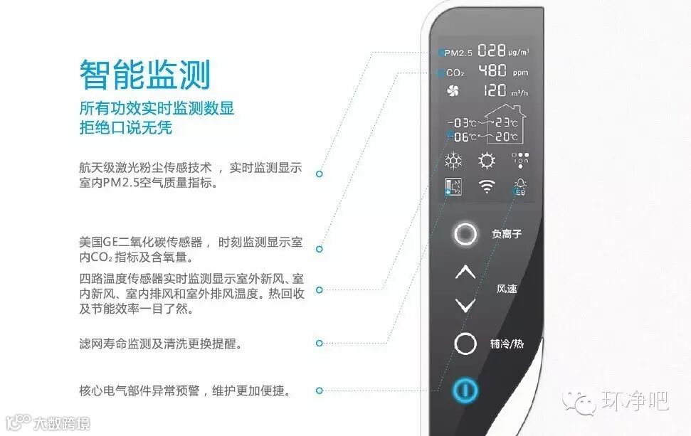四路温度传感器,实时检测室外新风、室内新风、室外排风的温度,及时了解室内空气的温度环境,享受更好的生活。