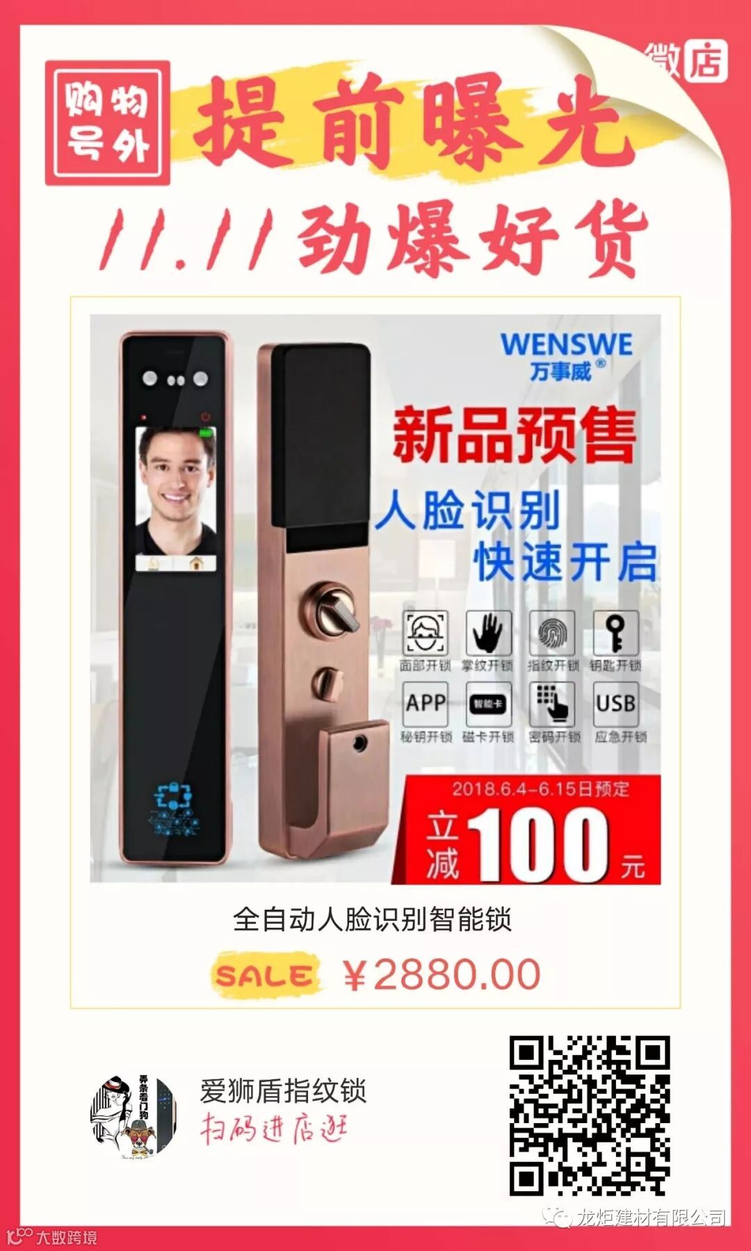 5种开锁方式:人脸,指纹,密码,芯片,钥匙。