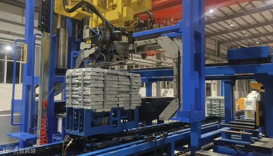 希洛奥德铅锌锭全自动打捆机,采用德国捷锐PET带重型捆扎机头,摩擦熔接技术,实现分层“#”字捆扎,重金属冶炼行业采用机器代人作业,保障安全生产。