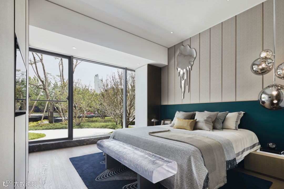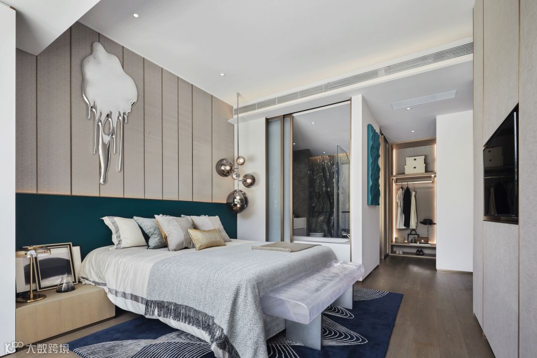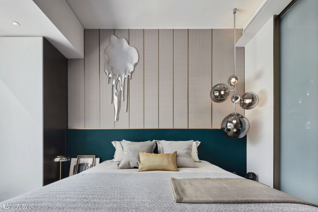 艺术属于有形之物,是艺术家灵魂的自然表现,但个性和风格既是艺术的灵魂。因此,设计师在卧室内使用的Anish Kapoor的水滴状金属电镀艺术品,正是表达了人只有领悟了生活的真谛,才能从容的、奢侈的看待事物、享受人生。