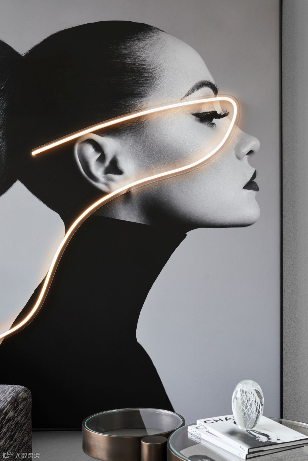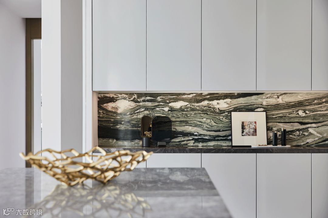其次,设计师在文化精神的营造上,除了使用具有的艺术气息与设计感的艺术品打造人文空间,亦使用了映衬的设计手法,将不同事物之间的共性维系在统一的空间情景里。这么做,一来平衡视觉效果,二来为空间与人所生活的场景制造出巧妙的联系。
