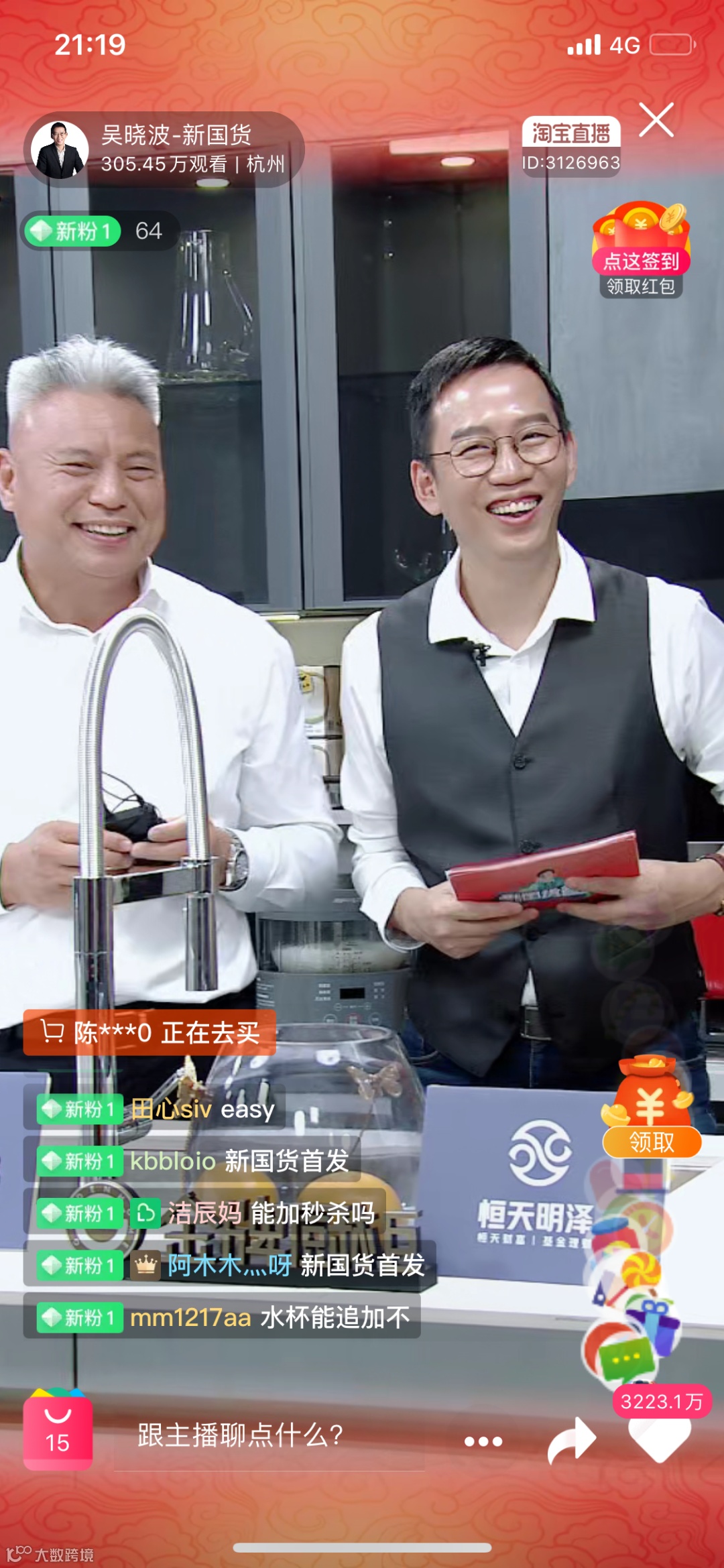 金牌厨柜总裁潘孝贞亲自上场,是金牌厨柜、奥普浴霸、恒洁卫浴三个直播带货品牌中,唯一个出场的品牌老总。一是可以看出金牌厨柜对此次直播带货的重视,二是看出吴晓波对金牌厨柜的格外偏好。