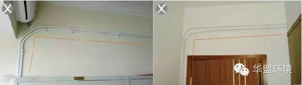 管路设计不巧妙,暴露显眼,施工工艺差,破坏装修。