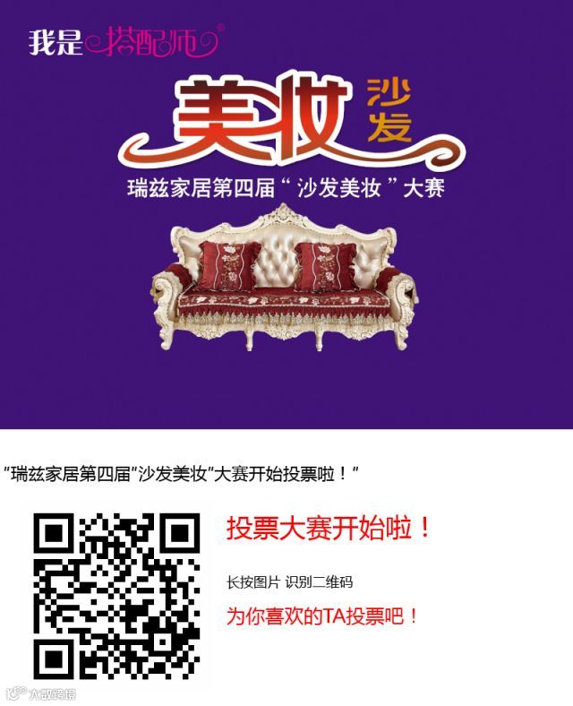 瑞兹家居一年一度的沙发“搭配师”大赛经过筛选,我们选出了20个作品,现在进入投票阶段啦!得票数最高的作品可以获得价值万元的羊毛大毯哦!快来为你喜欢的作品投票吧!