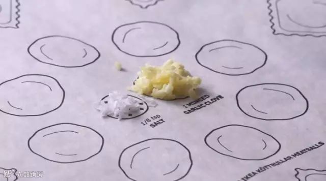 所有食材的分量、分布都在纸上作了详细的说明,这个说明不再是传统的一个描述,类似“少许”、“适量”这类模糊的字眼,而是一个图形范围,把食材放进图形里,放满了就正好,手残党们再也不用担心调料放多放少了。