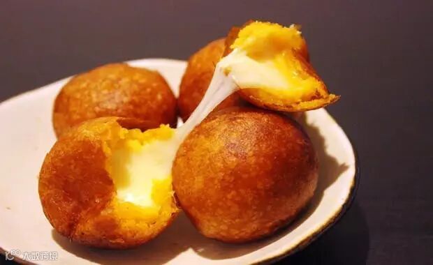 热乎乎的红薯丸子,内里夹着滚烫的芝士馅料,一口咬出长长的拉丝。