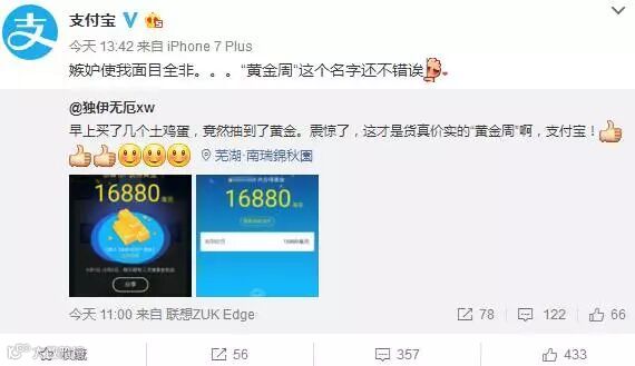 支付宝补贴活动的第一天,已经有不少网友在微博上晒出了自己得到的“意外惊喜”。