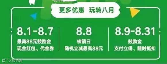8.1~8.7,用户消费可获得鼓励金等优惠;