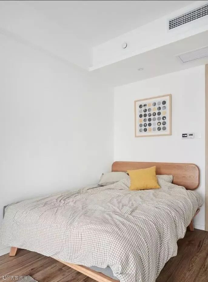 次卧是为父母准备的,原木有利于夜间休息,因为赐我空间小,所以把床放置在靠墙的一侧。
