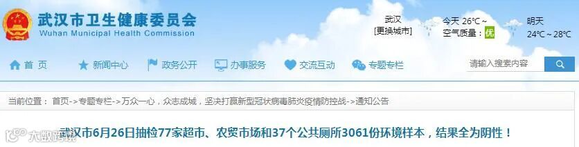 6月26日,市、区疾控中心对21个超市56个农贸市场的海鲜产品、淡水产品、肉类和畜禽类摊位的案板、刀具、台面、水池等环境及部分农贸市场、机场、火车站、长途汽车站、地铁站等场所的37个公共厕所进行抽样,共采集3061个环境样本,其中海鲜摊位样本225个、淡水产品摊位样本708个、肉类摊位样本897个、畜禽类摊位样本486个、公共厕所样本745个。新冠病毒核酸检测结果均为阴性。