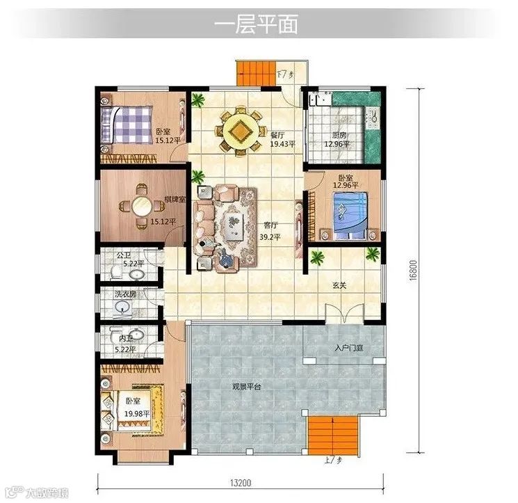 别墅占地:13.2mX16.8m