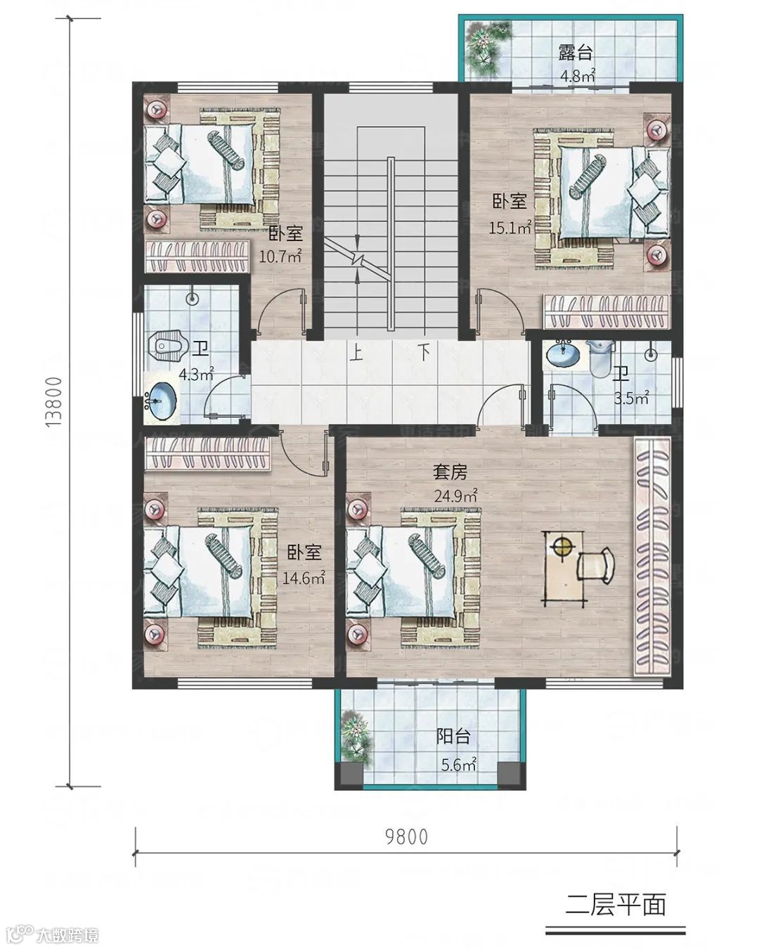 别墅占地:9.8mX13.8m