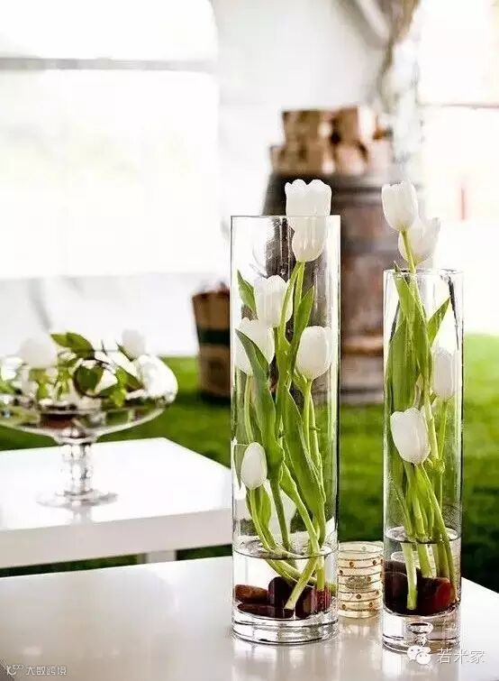 ▲玻璃花器最为精致美观、而且十分百搭。器物更是从生活中随手拈来,玻璃杯、饮料瓶、罐头瓶等洗净后都是好看的容器。