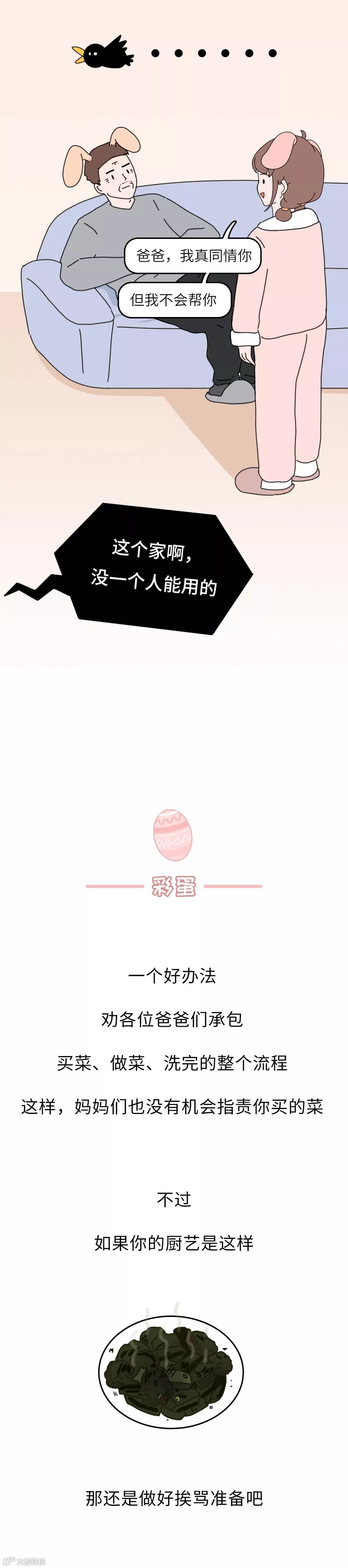 有人说是因为他们从不干家务,这乐姐就不同意了,你看我父亲大人,那真是干家务的一把好手,经常烧菜做饭,但就是买不好菜。