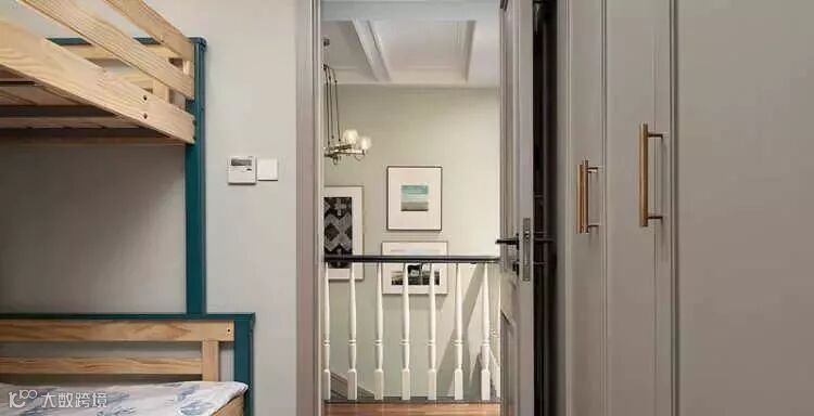 二层规划出完整的三间卧室,每间卧室的衣物收纳充裕并且还很富余。 主卧靠窗的角落是原本的空调外机位,全屋采用了中央空调,二楼的空调外机位闲置出来作为收纳柜。 男孩房衣柜、书柜、书桌、储物柜合理的安置,并且孩子还拥有宽敞的私人活动空间。 独立的卫生间,一家三口共用,规划宽敞一些方便全家人日常使用,夹角利用起来作为一个小储物间。 楼梯的重新规划,增大了楼梯位的挑空感,二层的廊道行走也很舒适。