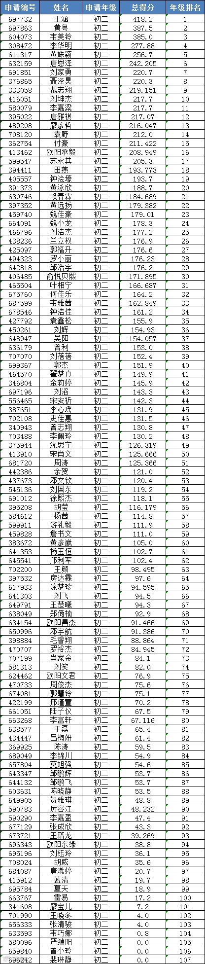 根据《东莞市非户籍适龄儿童少年接受义务教育实施办法》(东府〔2020〕31号)、《东莞市义务教育阶段非户籍适龄儿童少年积分制入学积分方案》(东府〔2020〕32号)等有关文件精神及市教育局积分制入学日程安排,现向社会公示我镇2569名申请人的积分及年级排名。