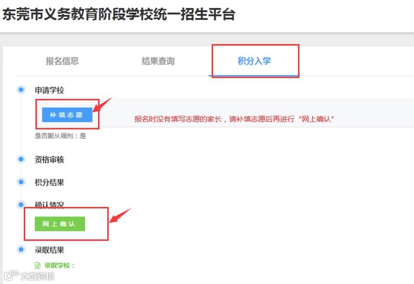 2.家长方逾期没有在招生平台进行“网上确认”的,视为自动放弃积分制入学申请资格。