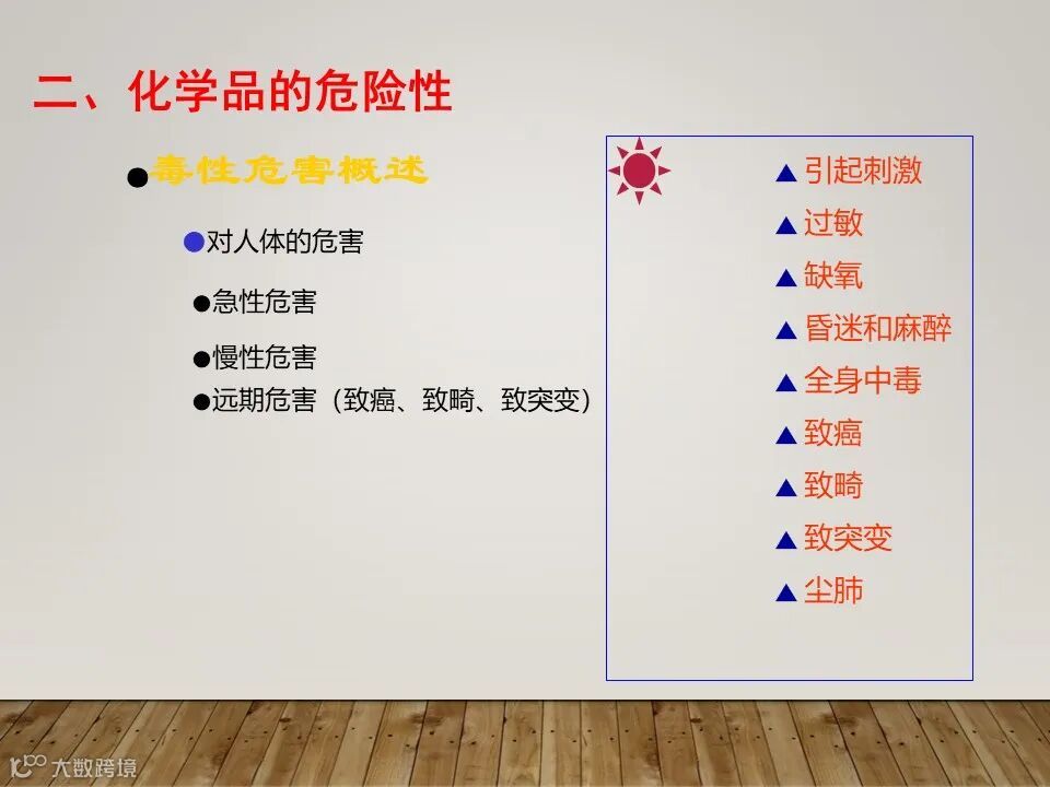 员工需要了解化学品的基本性质,如毒性、腐蚀性、易燃性等,以及可能对人体和环境造成的危害。这种认识可以帮助员工在实际工作中采取必要的预防措施。