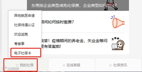 第一步,关注“东莞社保”公众号,选择“我的社保”-“电子社保卡”绑定个人信息。