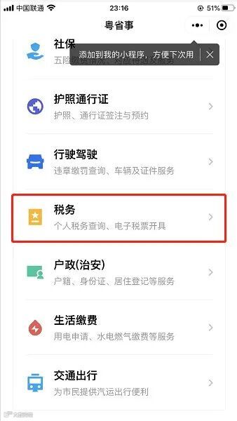 第一步,打开粤省事小程序,滑动到税务模块