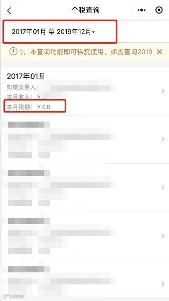 第三步,选择时间段2017年1月至2019年12月,查看本月税额模块,累计税额即为积分入学的税额模块计算。