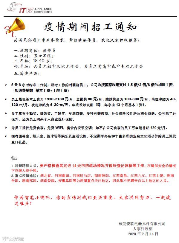 导读:疫情期间招工通告