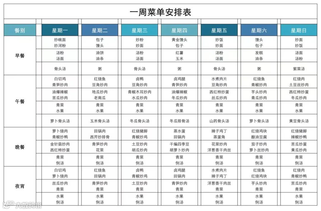 2343周食堂菜单安排