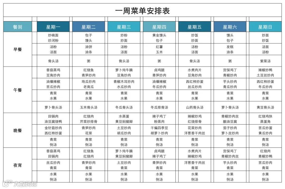一周菜单计划安排