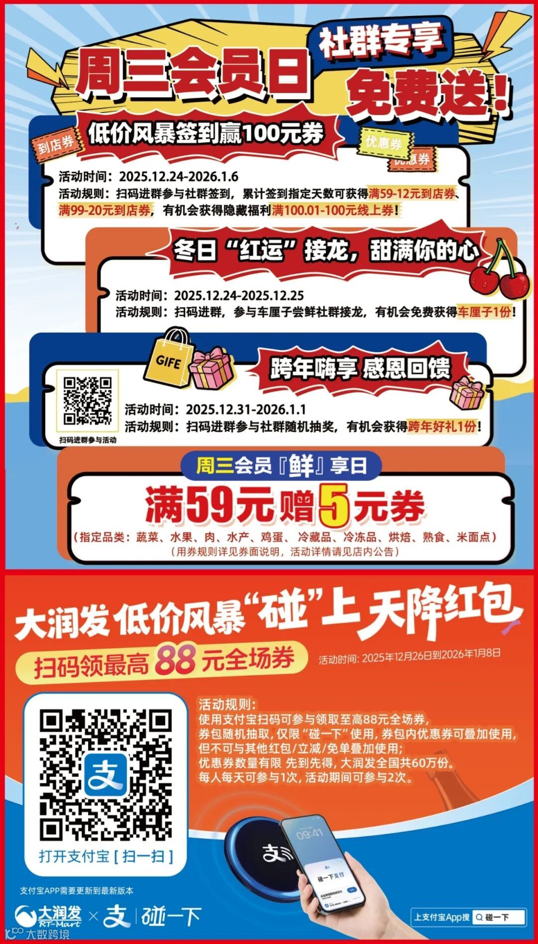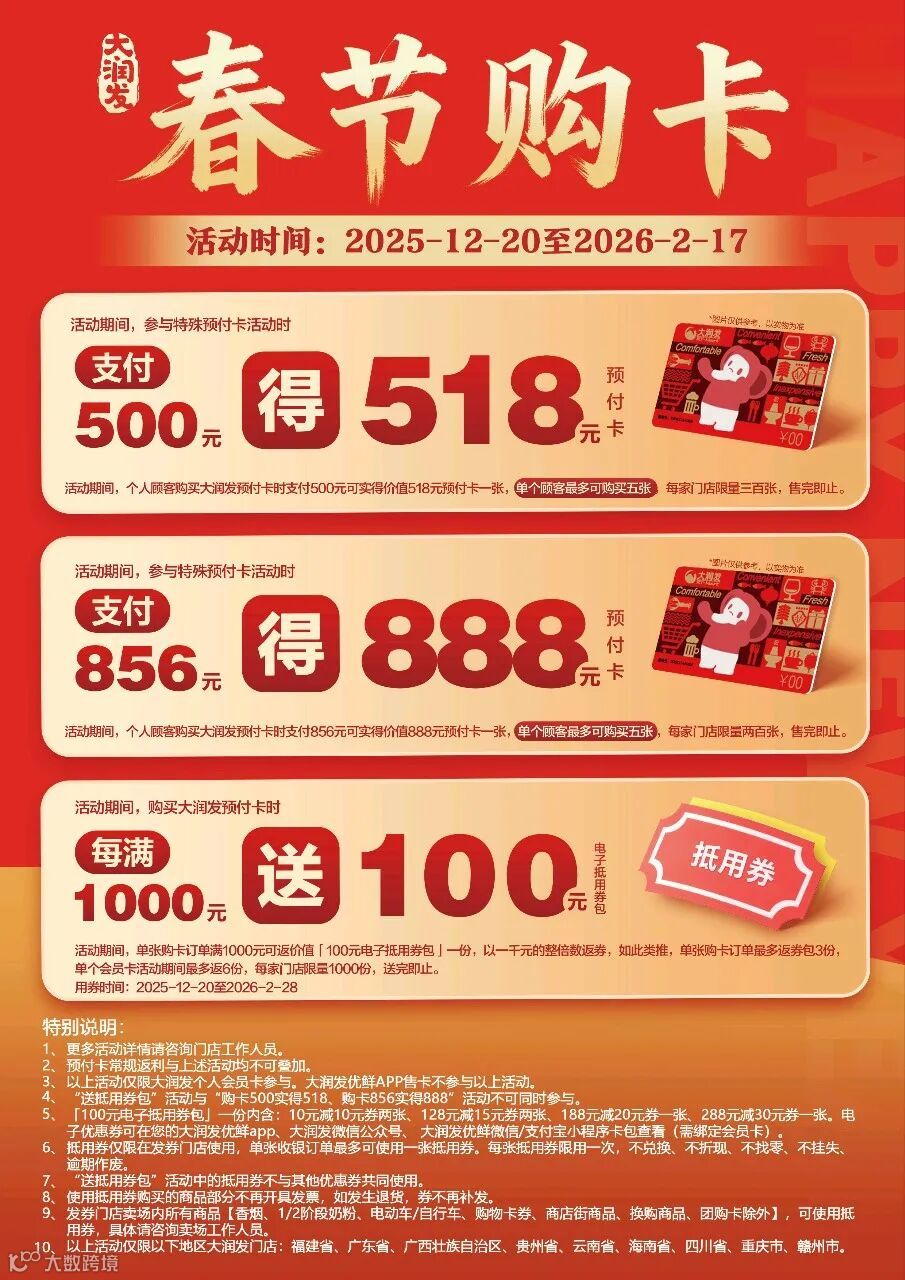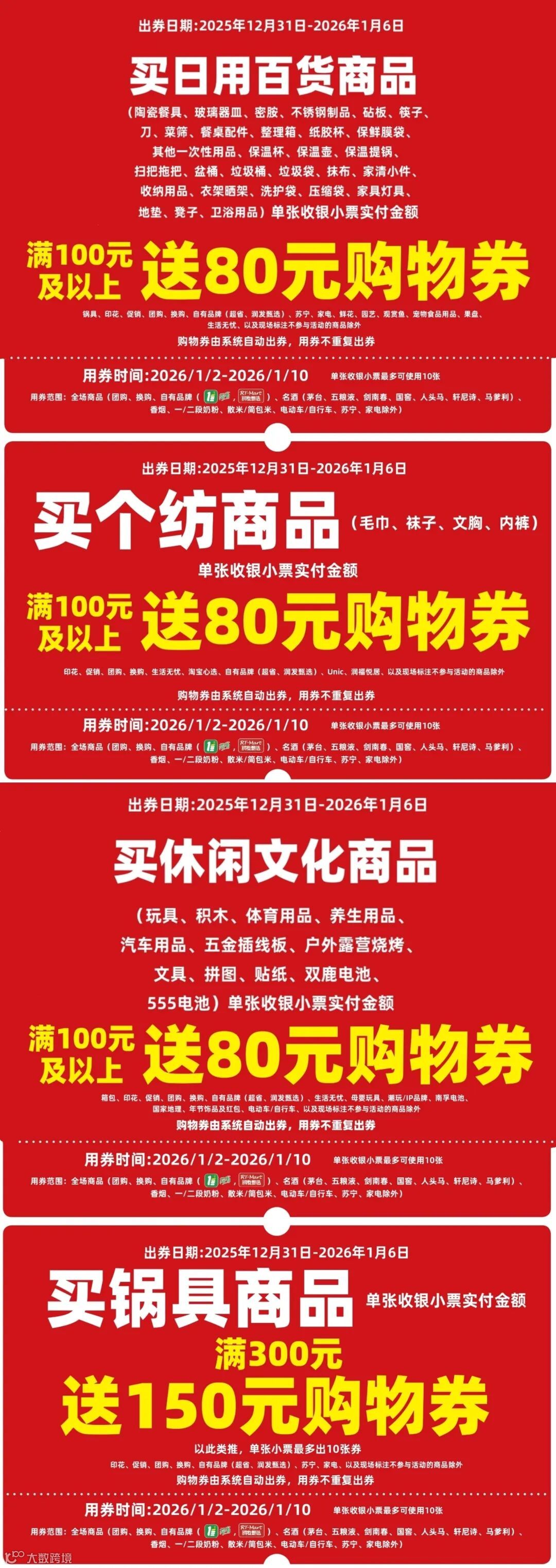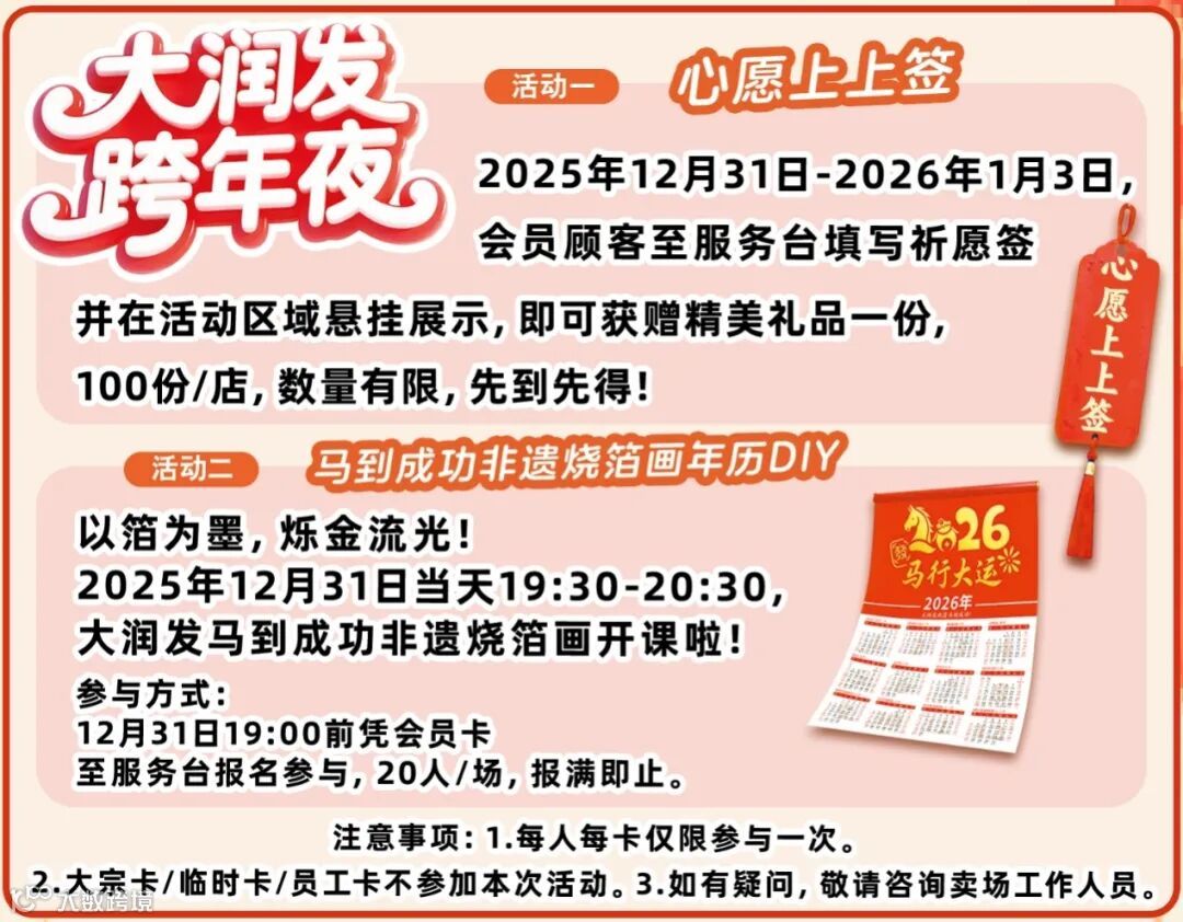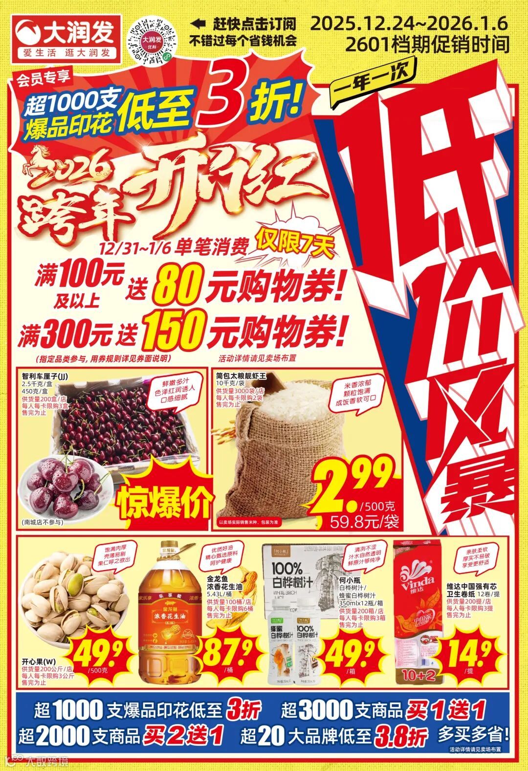 大润发 | 2026跨年开门红送券啦!超3千支商品买一送一!超2千支商品买二送一!超千支印花商品低至3折!