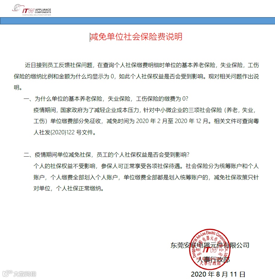 减免单位社会保险费说明