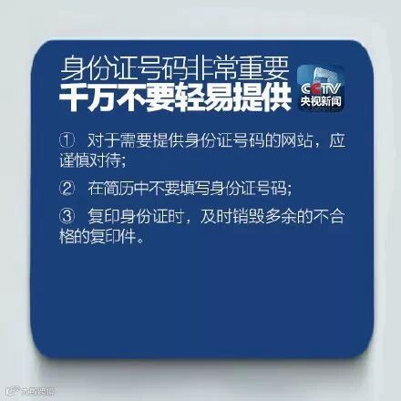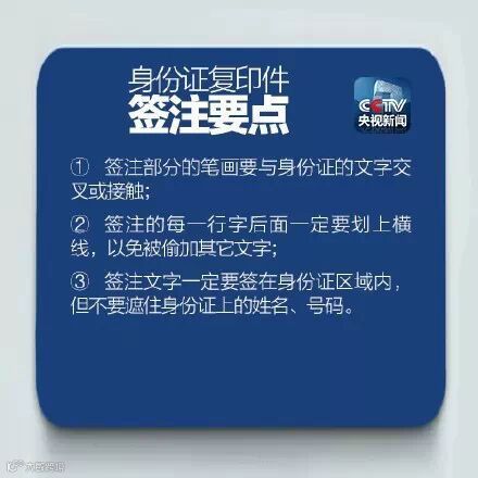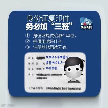 公安部刑侦局提醒,当你把身份证复印件给别人时,要注意在身份证复印件上科学签注,如“仅供办理XXX使用——”避免财产受不法分子侵犯。无论是信用卡、基金、手机、申请书,只要须附身份证复印件的,均可照此办理。