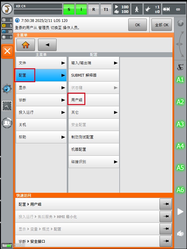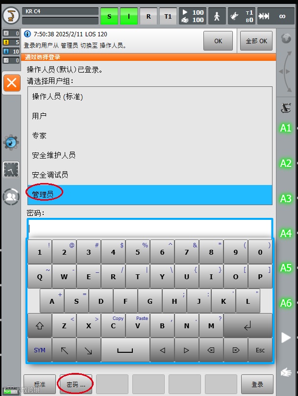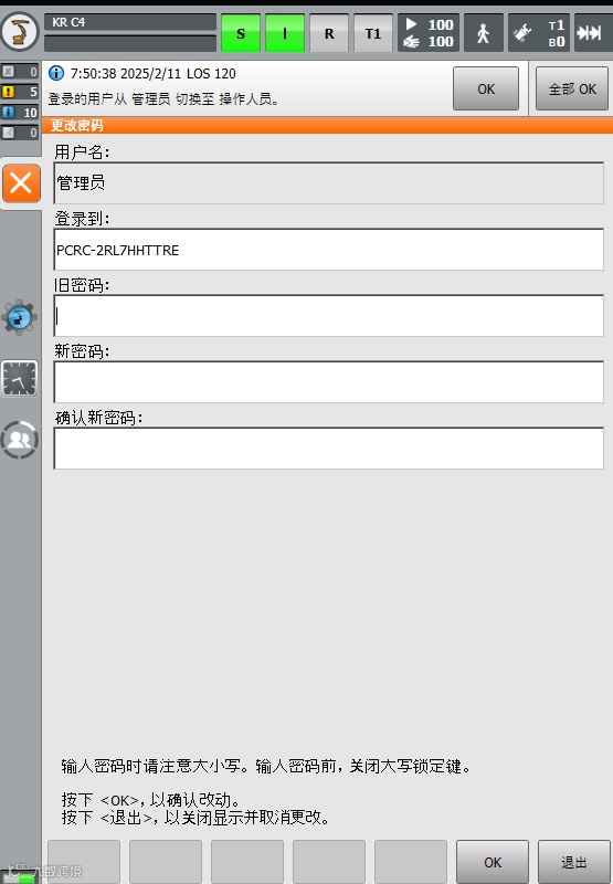 KUKA机器人密码修改方法:
