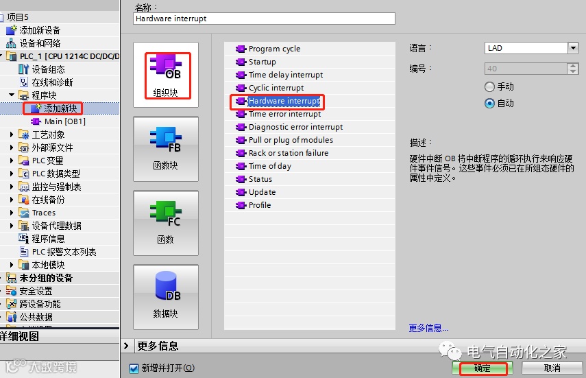 西门子1200PLC硬件中断程序