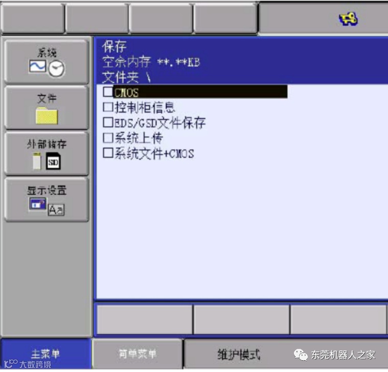1、启动进入维护模式,选择左边菜单中的外部存储,再选择保存。