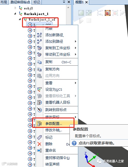 查看自动生成的各个目标点,并进行调整,在调整目标点姿态过程中,为了便于查看工具在此姿态下的效果,可以将此处目标点的工具显示出来