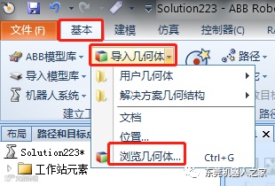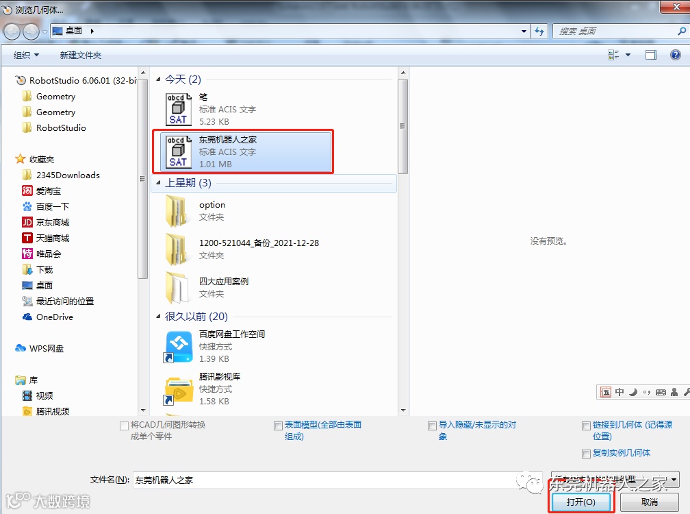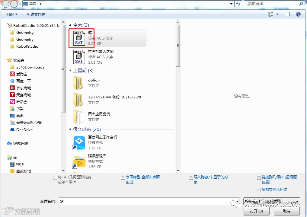采用第三方三维软件SolidWorks预先制作成相应的文字和笔模型,成功保存为SAT格式后,导入到RobotStudio软件中。