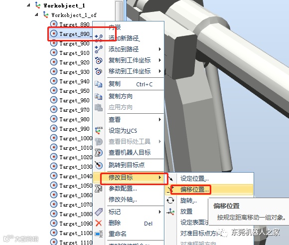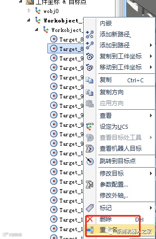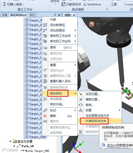 在上述目标点处,若想更改此处的姿态,可右击目标点,选择“修改目标”菜单下的“旋转”选项。同时,可通过Shift及左键,选中剩余的所有目标点,然后统一进行调整。