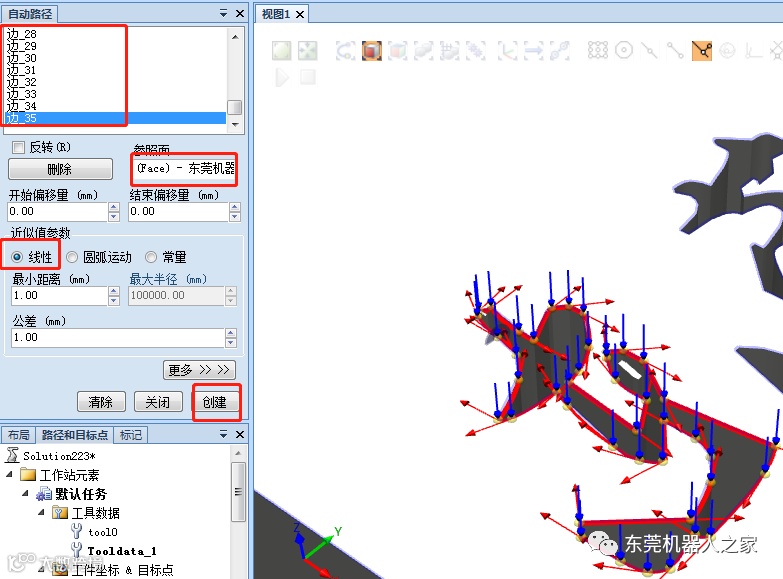 然后点击“创建”按钮,自动生成机器人的路径Path_10。按照上面的操作,完成文字其他部分的路径生成。