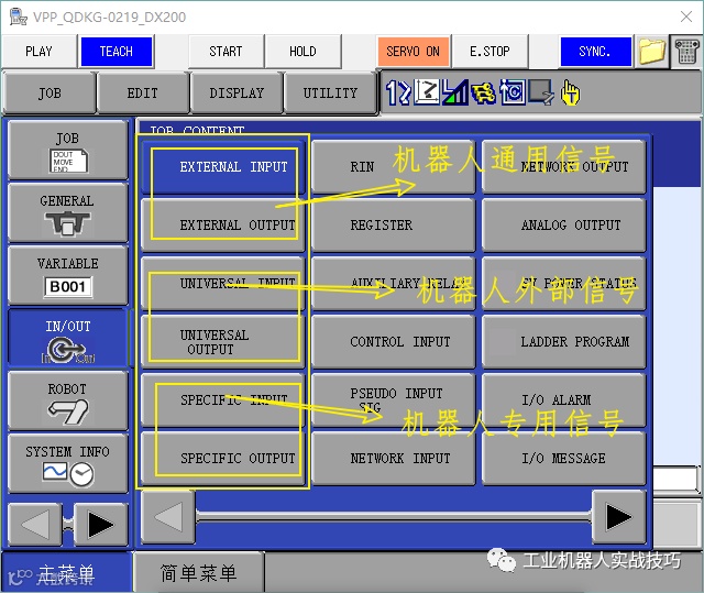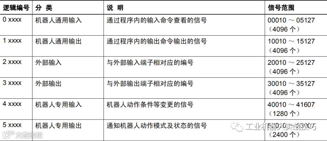 机器人通用信号:机器人内部可以通过程序处理并且正常使用的信号,其是由外部信号转换而来的。