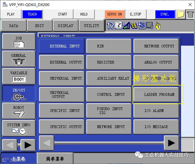 打开示教器软件进入梯形图功能,梯形图功能同PLC一样进行使用,但是只能运行常规的一些基本指令,最好不参加复杂的运算增加后台的负荷。