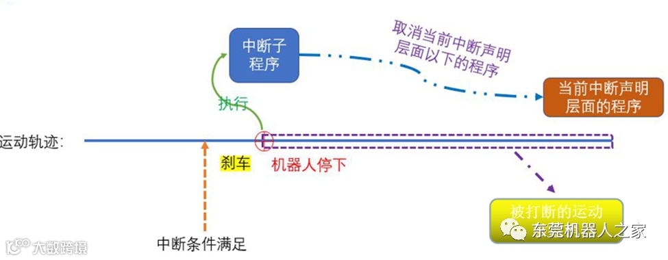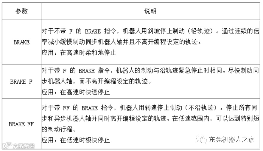 b. BRAKE F机器人的制动与沿轨迹紧急停止时相同(高速时急刹车)